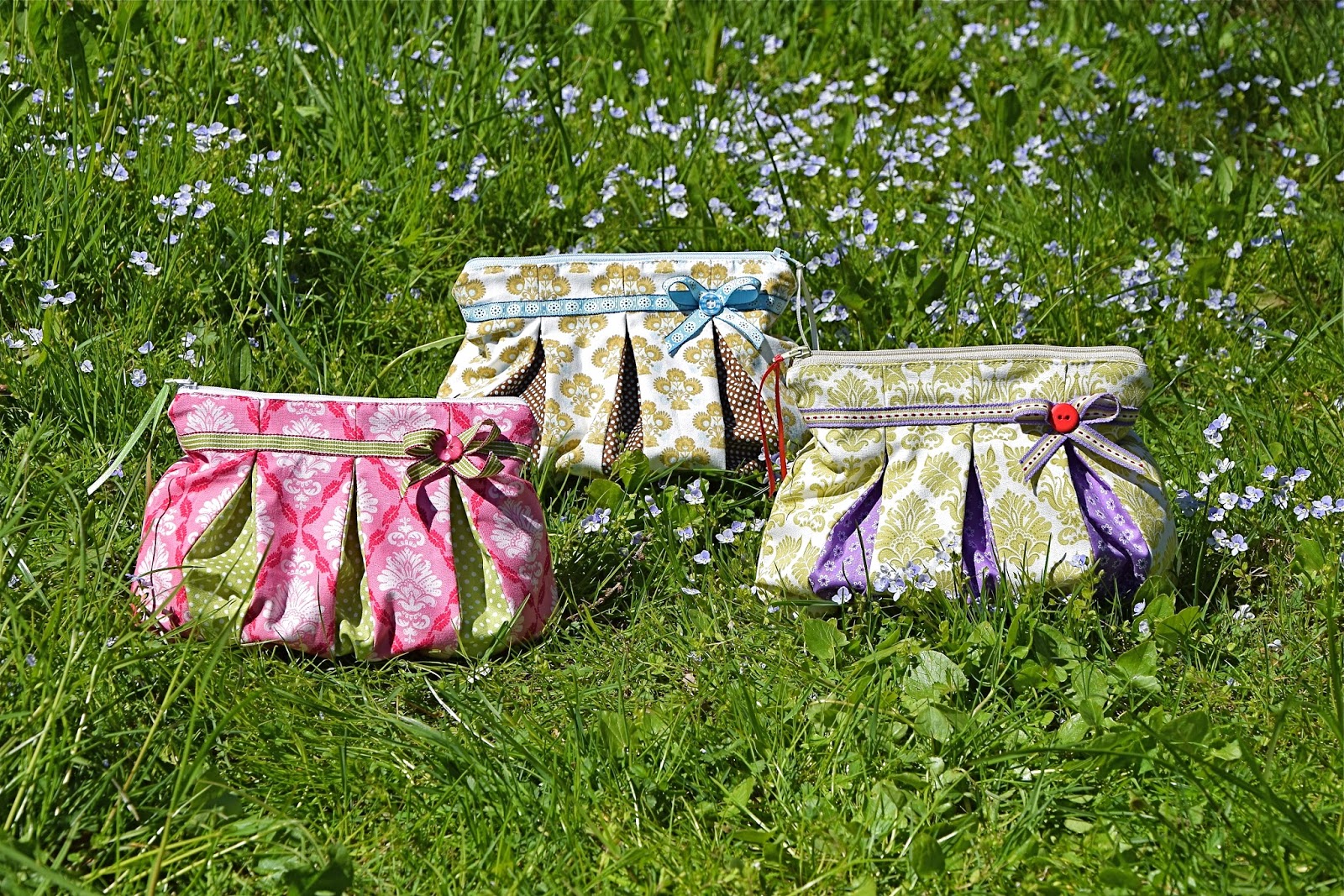 Ich habe gleich drei frühlingshafte Modelle genäht. Das Futter verstärke ich immer mit dünnem Volumenvlies, so hat das Täschchen etwas mehr Stand.